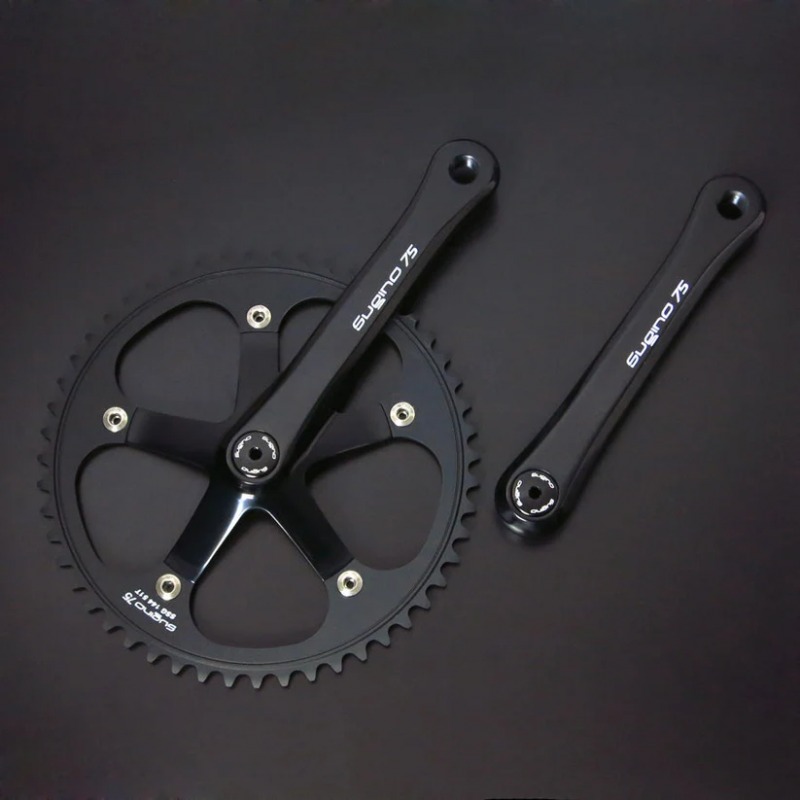 Highest quality track racing crank Sugino 75 and Classic style chainring SSG144 for professional riders.