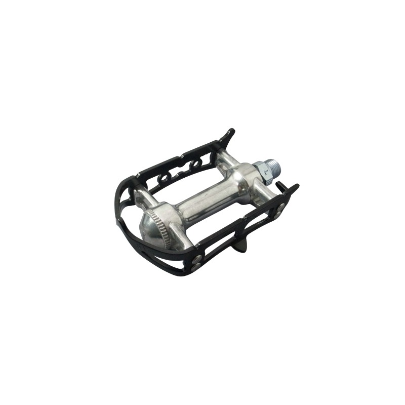 The Sylvan Road is built around a compact pedal body and features a single-sided one-piece cage plate that is curved around the end cap of the pedal, that allows for more clearance when cornering than the touring while protecting the axle. The cage plate tooth profile is essentially flat, so we recommend toe clips and straps with this pedal.