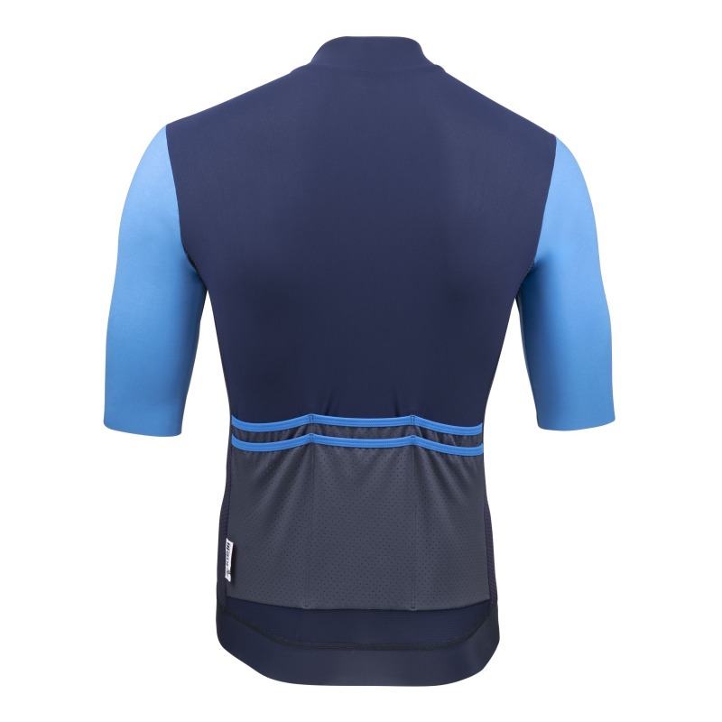 Rękawy z lekkiej tkaniny z haftem exagon i laserowym cięciem na brzegach. Korpus z delikatnego materiału, wyjątkowo wygodnego i oddychającego Materiał zapewnia szybkie schnięcie i ochronę przed promieniowaniem UV. Boki z siatki dla lepszej wentylacji,zamek błyskawiczny na całej długości, obszycie termiczne z przodu, a z tyłu silikonowy elastyczny ściągacz. Sześć tylnych kieszeni z siateczki.