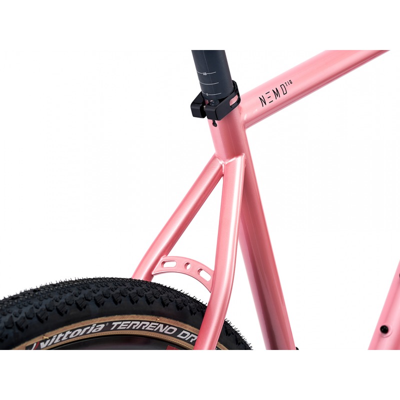 Nemo Gravel reprezentuje nasz najbardziej hybrydowy i wyprawowy rower szutrowy w historii, w całości wykonany ręcznie przez konstruktora ram Cinelli w siedzibie głównej w Mediolanie przy użyciu niestandardowych potrójnie cieniowanych rur wykonanych przez siostrzaną firmę Columbus, mniej niż 100 metrów od warsztatu budowy ram. Nieustannie udoskonalany przez roczny okres testów przez kolarzy, w tym byłych mistrzów świata UCI, legendy kurierów NYC, profesjonalnych snowboardzistów i wielu innych sportowców dążących do ponownego zdefiniowania granic tego, czym może być kolarstwo szutrowe, Nemo Gravel charakteryzuje się przede wszystkim całkowicie przeprojektowaną geometrią, oponami o rozmiarze 700 x 47 mm i zastosowaniem widelca HiRide Sterra o skoku hydraulicznym 20 mm. Wszystkie te cechy składają się na rower, który jest gotowy do stawienia czoła najbardziej ekstremalnym zawodom na świecie i przygodom szutrowym.