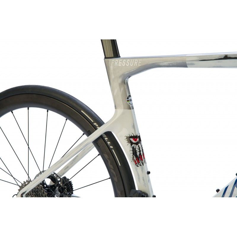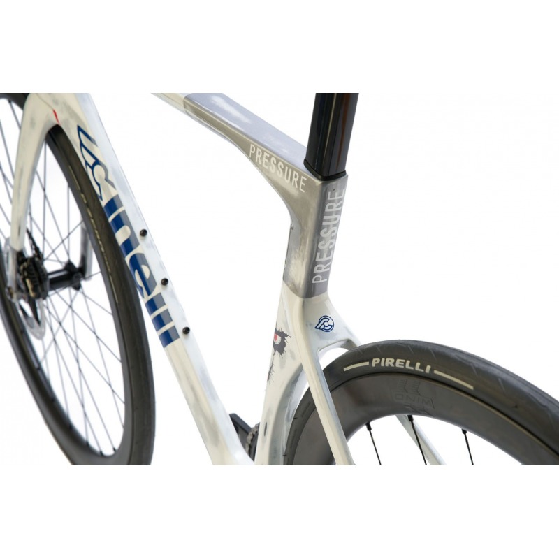 Stworzony do ścigania, Pressure jest szczytem języka projektowania rowerów szosowych Cinelli. Wykonany z wysokomodułowego włókna węglowego T800 z zastrzeżonym układem, przetestowanym i opracowanym we współpracy z czołowym włoskim zespołem programistów, Colpack Ballan CSB, przez okres dwóch lat, Pressure podsumowuję we współczesnym mediolańskim języku projektowania zapotrzebowanie rowerzystów na wyczynowy zestaw aerodynamicznym profili rur, zintegrowane okablowanie i agresywne wyczucie drogi, które składa hołd naszemu historycznemu włoskiemu wyścigowemu DNA… Do różnych prestiżowych zwycięstw zawodowych zaliczają się Mistrzostwa Świata UCI U23 Mężczyzn 2021 z Filippo Baroncinim.