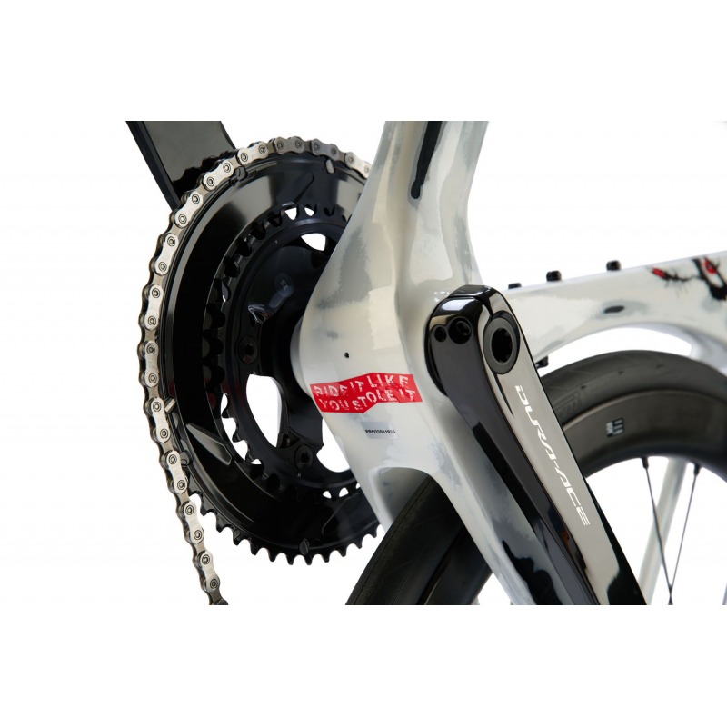 | Dynamiczna wyścigowa geometria: Oś przelotowa i wybór hamulca tarczowego z całkowicie wewnętrznym okablowaniem decydują o czystszej i szybszej konstrukcji geometrii, która pozwala na najbardziej zwartą i aerodynamiczną pozycję rowerzysty. |